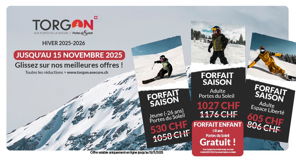 Jusqu'au 15 novembre !AcheterVotre forfait saison Portes du Soleil à prix réduit.